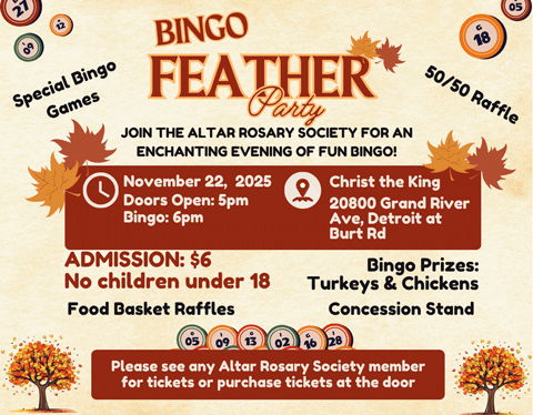 Please see any Altar Rosary Society member for tickets, or purchase tickets at the door.